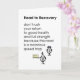 A funny get well card, featuring a bad poem and illustration, that cautions against being in too much of a hurry to get better.