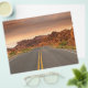 A stunning landscape photo of a sunset on a road trip.