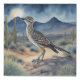 This striking canvas print captures the beauty of a roadrunner standing under the glow of a desert moon, surrounded by cacti, mountains, and starlit skies. The detailed artwork highlights the bird’s unique features while showcasing the quiet drama of the desert at night.