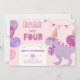 Roar Into 4 Invitations. Dinosaur Girl 4th Invitation