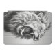 Awesome delicate pencil sketch depicting a roaring male lion.