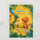 Make your little one’s birthday roar with this dinosaur party invitation! Featuring playful cartoon dinosaurs, balloons, and jungle leaves, this invitation is perfect for dinosaur-loving kids. Personalize with your child’s name, age, and party details. Great for boys ages 3–10 and dino-themed celebrations.A fun kids’ birthday party invitation featuring a cartoon T-Rex and Triceratops wearing party hats, holding balloons, and surrounded by jungle leaves. Bright, cheerful background with confetti and a dino footprint border.