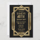 Roaring 20s Art Deco Black | Gold 40th Birthday Invitation