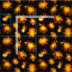 Cool fabric featuring a bold pattern of roaring flames. On a deep grey background.