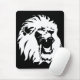 Roaring lion face simple black and white graphic design in the style of a stencil artwork.