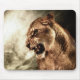 Roaring lioness against stormy sky mouse pad