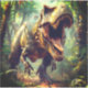 This design stands out through its explosive forward movement and high-impact composition. The open mouth, dynamic stance, and layered rainforest background generate urgency and dominance, making the scene feel alive and immersive. The strong perspective and saturated color intensity make it visually commanding and impossible to ignore.