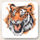 "Roaring Tiger Portrait." The illustration shows a fierce, roaring tiger with vibrant orange, black, and white colors. The background has an artistic splash effect that enhances the dramatic feel of the artwork.