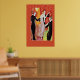 Roaring Twenties illustration on red background, by Annie Offterdinger for Jugend Magazine, c.1923. Sophisticated flapper girls in their gorgeous dresses with headband, along with their gents in white tie and tails, make a stunning fashion statement as they dance the night away. Great gift and piece of memorabilia for the lover of deco art and fashion, depicting the Golden Age of Jazz!