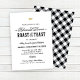 This crisp and charming "Roast and Toast" rehearsal dinner invitation features bold mixed typography on a clean white background, with a gold pig silhouette accent and an elegant infinity flourish. The coordinating black gingham backing adds a playful country touch. All wording is fully customizable for your event details. A stylish choice for a rustic, country, or backyard wedding rehearsal dinner.