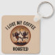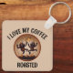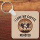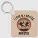Show off your love for freshly roasted coffee beans with this funny “I Love My Coffee Roasted” metal keychain.