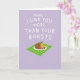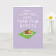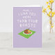 Designed with a soft lavender background filling the top two-thirds, this card centers a large white message that reads like a casual note from someone close ❤️. The lettering sits prominently in the upper area, leaving airy space around it so the words feel like they’re being spoken directly to the reader. Beneath the text, a simple illustration shows a white dinner plate tipped at a slight angle, adding a sense of motion like it’s just been set down for someone special. On the plate is a deep-brown roasted main item alongside golden, uneven potato-like pieces, suggesting a cozy meal shared with care. Small red berry-like dots and fresh green garnish are scattered around, like thoughtful little touches added for the person you adore 🌼. The food scene rests on a diagonally placed green-and-white plaid mat that brings a homey, kitchen-table feel. A few of the red accents cluster near the plate’s edge, and the green garnish is tucked between the roasted item and the potatoes. Share Mother’s Day sentiments with someone you love.