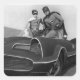 Robin and Batman Standing in Batmobile Square Sticker