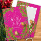 Robin Birds Holly Berry Hot Pink Holiday Card