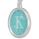 Robin blue flourish initial monogram letter charm silver plated necklace