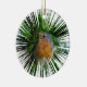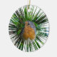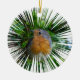 A digitally enhanced photograph of a robin printed on a round Christmas Tree ornament.