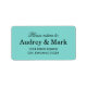 Refined black calligraphy reading "Please return to:" sits above the couple's names in elegant serif lettering on this charming robin egg blue wedding return address label. The aqua background brings a fresh, sophisticated touch to your wedding mailings. All text is fully customizable.