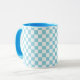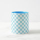 Sip in style with this Robin Egg Blue combo mug, adorned with a clean white square pattern for a fresh, modern touch. Perfect for coffee, tea, or cocoa, the durable design features a contrasting interior for added flair. A unique blend of function and fashion for your daily beverage routine.