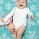 A whimsical winter fleece blanket covered in a variety of white snowflake designs on a cheerful robin egg blue background. The mix of detailed and simple snowflake shapes creates a playful, frosty pattern perfect for the holiday season and all winter long. Great as a cozy baby blanket, kids throw, or festive seasonal accent for any room. Not customizable — this is a ready-to-order pattern design.