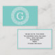 Robin Egg Wht Greek Key Rnd Frame Initial Monogram Business Card