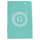 Robin Egg Wht Greek Key Rnd Frame Initial Monogram Medium Gift Bag