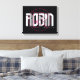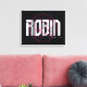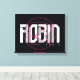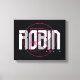This graphic offers a contemporary reinterpretation of the Robin emblem, blending classic elements with modern design sensibilities. The logo centers around a bold, geometric depiction of the word "ROBIN," set in stark white against a deep black background, encapsulated within a striking pink circle that adds a dynamic visual contrast. The circle not only frames the text but also breaks through it, suggesting Robin's emergence from the shadow of Batman to establish his own identity. The use of pink adds an unexpected twist, lending a fresh and modern vibe while still paying homage to the traditional red associated with Robin. This design captures the essence of Robin's evolution as a character, blending his heroic legacy with a sleek, urban aesthetic suitable for a new generation of fans.