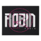 This graphic offers a contemporary reinterpretation of the Robin emblem, blending classic elements with modern design sensibilities. The logo centers around a bold, geometric depiction of the word "ROBIN," set in stark white against a deep black background, encapsulated within a striking pink circle that adds a dynamic visual contrast. The circle not only frames the text but also breaks through it, suggesting Robin's emergence from the shadow of Batman to establish his own identity. The use of pink adds an unexpected twist, lending a fresh and modern vibe while still paying homage to the traditional red associated with Robin. This design captures the essence of Robin's evolution as a character, blending his heroic legacy with a sleek, urban aesthetic suitable for a new generation of fans.