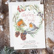 Robin Mistletoe and Pine Wreath Christmas Party Invitation