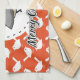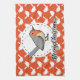 Robin on Orange White Bird Pattern - Merry Xmas Kitchen Towel