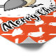 Robin on an orange white pattern background with caption "Merry Christmas".