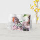 Artist's rendition achieves effect of feeling as if you can hear this sweet little robin chirping as he perches on the green-laced rocks. Smile-inducing nature scene in vivid colors. Love the splashes of robin red, green, and natural shades of rocks. Printing quality is outstanding.