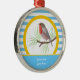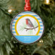 Robin Redbreast customizable ornaments ceramic or metallic featuring a cute bird robin redbreast in a yellow circle and blue and white striped pattern. Great gift for bird, animal lovers not just for Christmas.