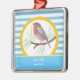 Robin Redbreast customizable ornaments ceramic or metallic featuring a cute bird robin redbreast in a yellow circle and blue and white striped pattern. Great gift for bird, animal lovers not just for Christmas.