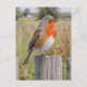 A simply stunning art design Image of adorable Robin sat on the fence. This postcard would brighten anyone's day for any occasion. Wildlife at its finest.