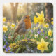 Robin Singing Into a Daffodil Square Sticker