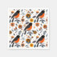 A seamless pattern of the popular robin bird surrounded by flowers in colors of orange, blue, and yellow.