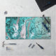 Decorative desk mat done in an robin's egg blue and gray marble like abstract design. Personalize the name at the top of the mat, to suit your needs. Great gift idea for her.