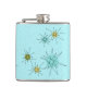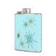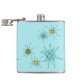 This Robin’s Egg Blue Iconic Atomic Starbursts Vinyl Wrapped Flask pattern features iconic atomic starbursts. That’s right! The old school, robin’s egg blue colored background with gold speckles is the perfect backdrop for the vibrant turquoise, soothing celery, and kitschy pear green colored circles. The spots of color are sporadically placed in various sizes with overlaying black V shaped lines to form the mod sputnik starbursts. Styled after a 1950’s dish pattern, this retro inspired design has everything you need to be truly mid century modern.