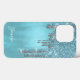 Elegant phone case done in a robin's egg blue foil look with faux robin's egg blue and silver glitter paint dripping down, from the top of the case. Personalize the text for yourself or as a chic gift idea for her.