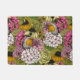 Hand-drawn pattern with various flowers- hydrangea, anemone, peony, dahlia and robin birds