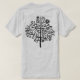 A drawing of a somewhat unnatural looking tree in black the shapes make it look somewhat like a cross between a tree and a circuit diagram. Or maybe a map of a computer network or website. The motif is also repeated on the back. However this shirt can be customized.