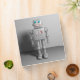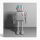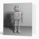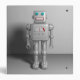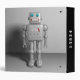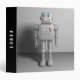 A binder with an original 3d photo-realistic rendering of a cute little metal robot. The image is repeated on both the front and back covers. The spine has white lettering on a black background, customize the lettering to add your title.