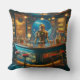 Robot Bartender in Interstellar Space Age Dive Bar Throw Pillow