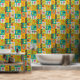 Elevate your child's space with the Robot Colorful Fun Orange Green Yellow Pattern Wallpaper from Ricaso.