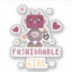 Cute robot girl burgundy shades with hearts and text FASHIONABLE GIRL
