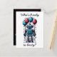 Personalized boy's birthday invitation with a robot theme. Colors are blue, red and black. A cartoon robot holding up red and blue balloons. Cute for any little boy who loves robots!