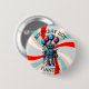 Personalized boy's happy birthday boy button with a robot theme. Colors are blue, red and black. A cartoon robot holding up red and blue balloons. Cute for any little boy who loves robots!