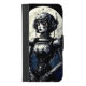 + AI ART + Beautiful retro-style cyborg woman in front of the moon.