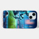a verry cool and beautiful soccer court and robotic game design on the back of an Iphone15 Case Mate cover!