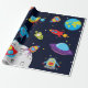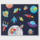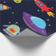 Crazy, happy, colorful assortment of robots amid the planets and stars. Perfect for a child's birthday, or for any occasion, for anyone who loves robots or Sci-Fi or a 50s cartoon feel. The images are quite large, so this is best to use on large packages. Be sure to check what finish you want on the paper under “Options”, “Media”-- this item is currently set for the "matte" finish. There's plenty of room to customize the paper with a name or personal message.